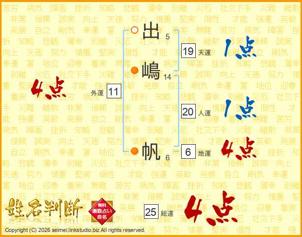 出嶋帆さんの総運は25画の4点!