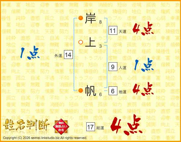 岸上帆さんの総運は17画の4点!