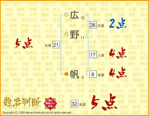 広野帆さんの総運は32画の5点!
