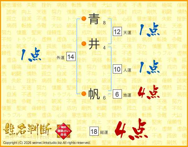 青井帆さんの総運は18画の4点!