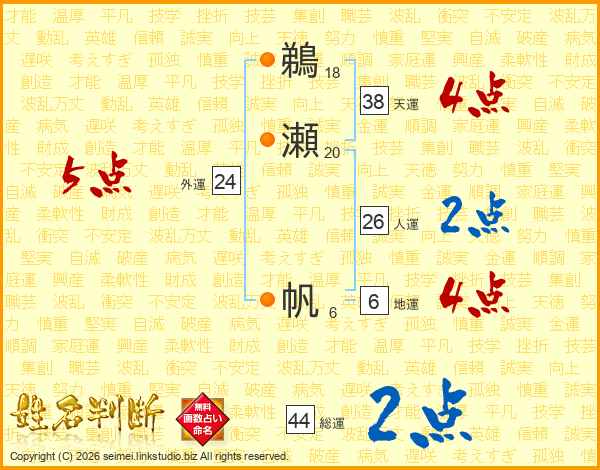 鵜瀬帆さんの人運は26画の2点!