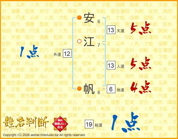 安江帆さんの総運は19画の1点!