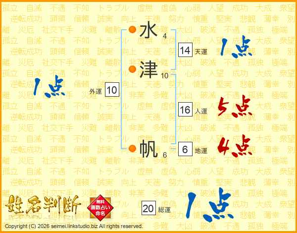 水津帆さんの天運は14画の1点!