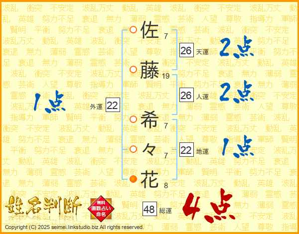 佐(7画)藤(19画) 希(7画)々(7画)花(8画)
