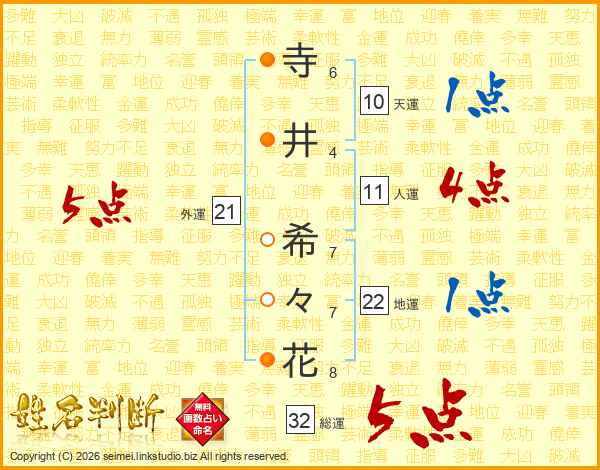 寺井希々花さんの総運は32画の5点!