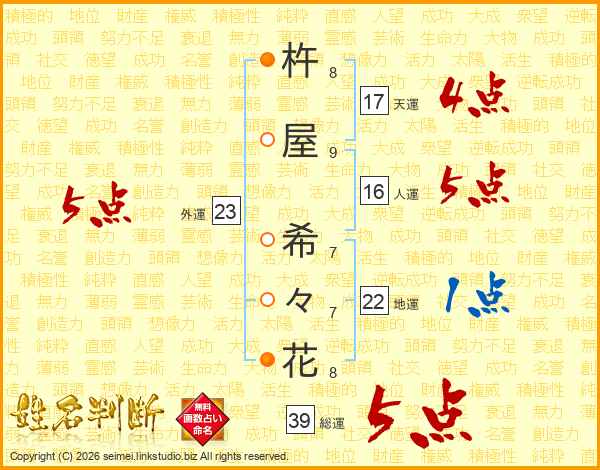 杵屋希々花さんの天運は17画の4点!