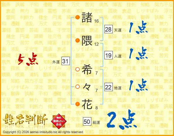 諸(16画)隈(12画) 希(7画)々(7画)花(8画)