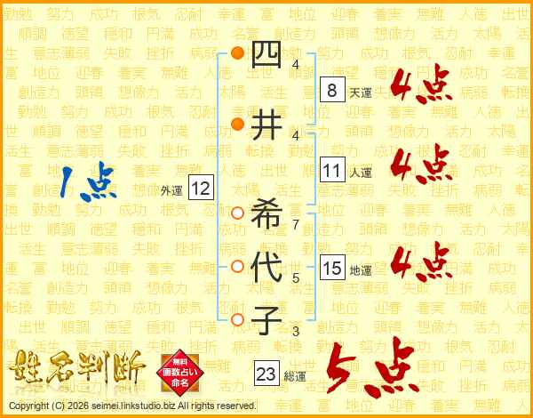 四(4画)井(4画) 希(7画)代(5画)子(3画)