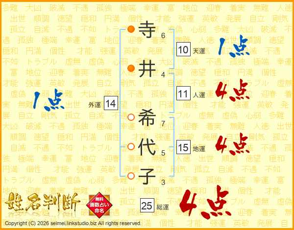 寺(6画)井(4画) 希(7画)代(5画)子(3画)