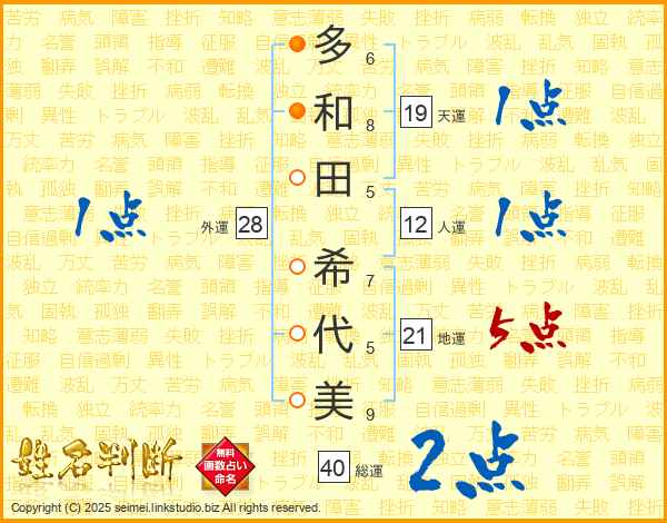 多和田希代美さんの総運は40画の2点!