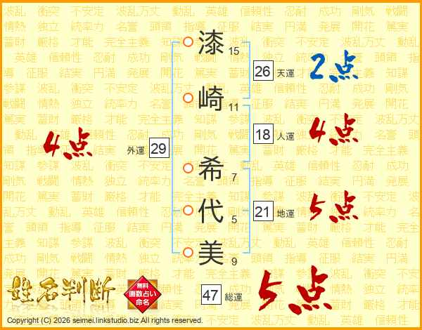 漆崎希代美さんの総運は47画の5点!