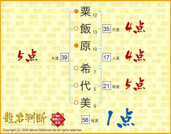 粟飯原希代美さんの総運は56画の1点!