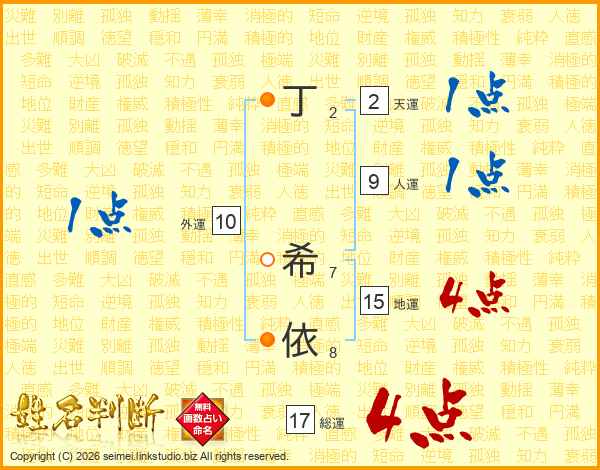 画数の奇数(○陽)と偶数(●陰)の配列で吉凶を占います。どちらかにかたよる名前は大凶名で避ける必要があります。画数の奇数偶数。