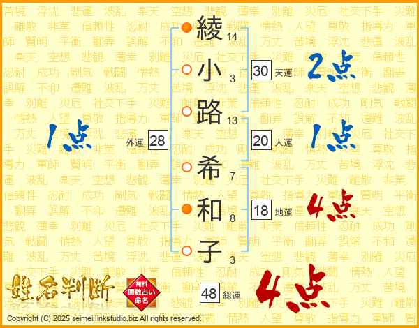 綾小路希和子さんの総運は48画の4点!