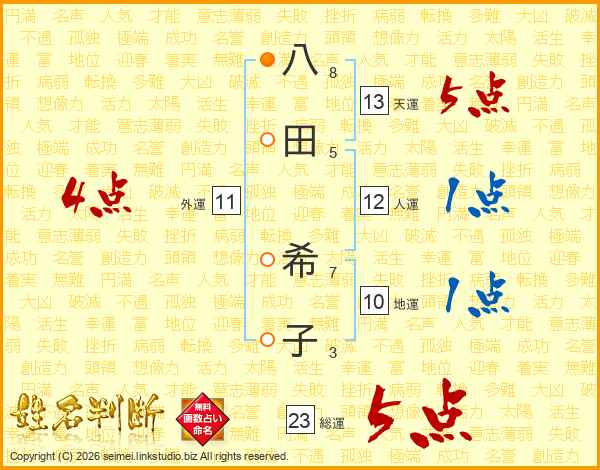 八田希子さんの総運は23画の5点!