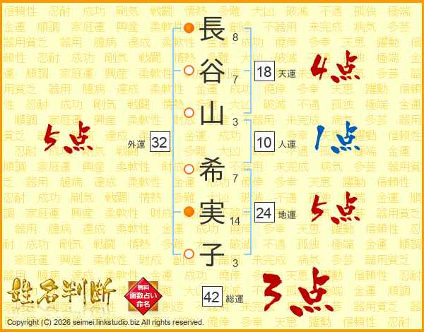 長谷山希実子さんの外運は32画の5点!