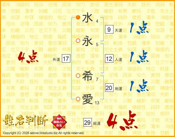 水永希愛さんの総運は29画の4点!