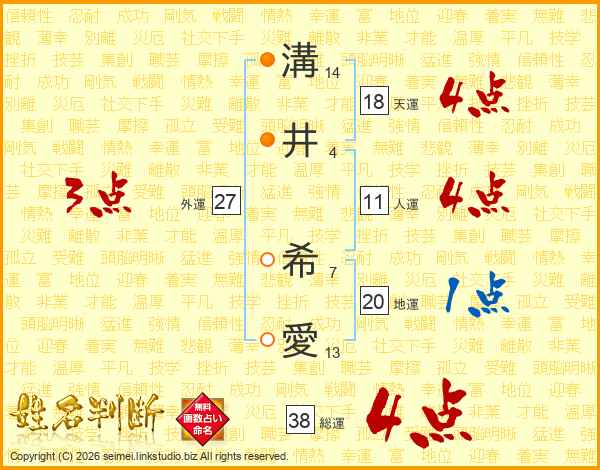 溝(14画)井(4画) 希(7画)愛(13画)