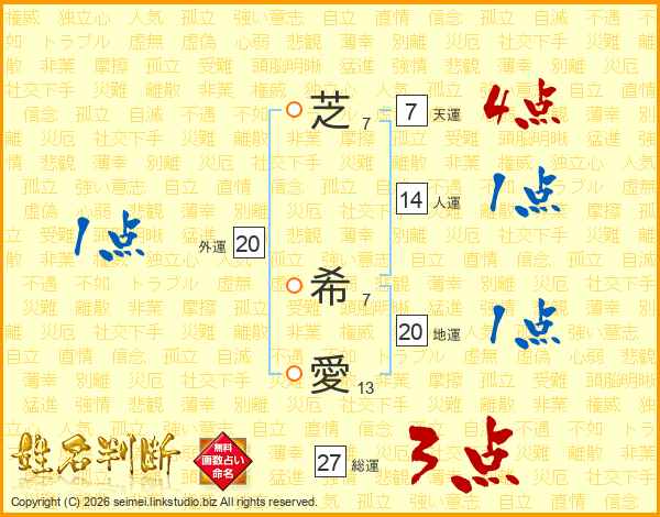 芝希愛さんの総運は27画の3点!