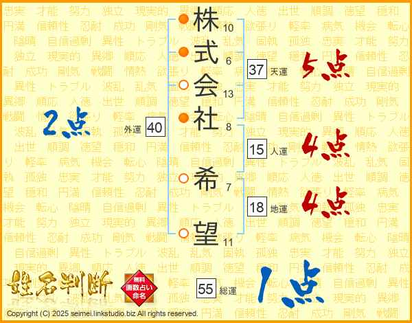 株式会社希望さんの総運は55画の1点!
