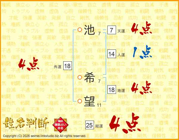 池希望さんの総運は25画の4点!