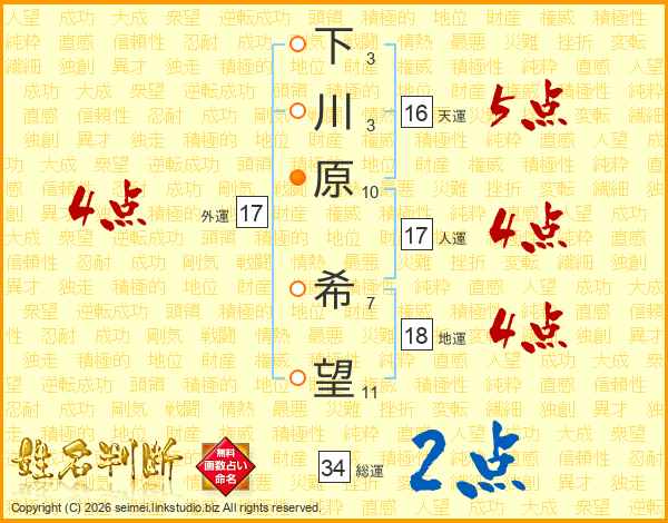 下(3画)川(3画)原(10画) 希(7画)望(11画)