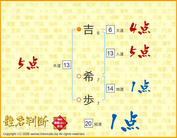 吉希歩さんの外運は13画の5点!