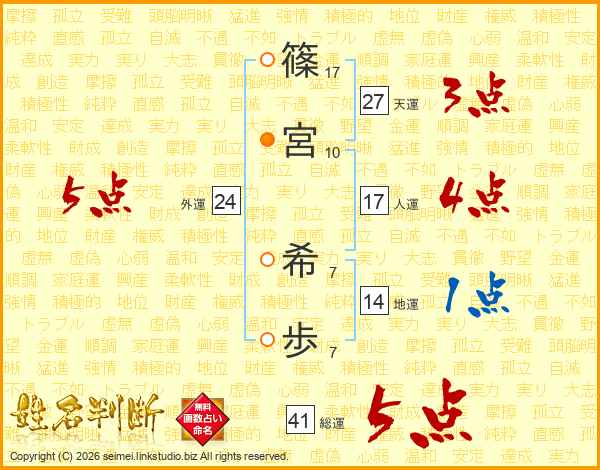 篠宮希歩さんの総運は41画の5点!