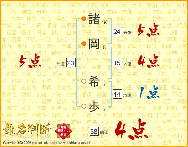 諸岡希歩さんの総運は38画の4点!
