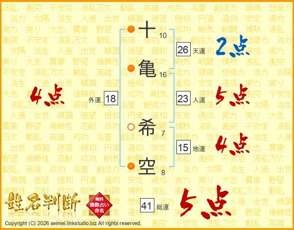 十(10画)亀(16画) 希(7画)空(8画)