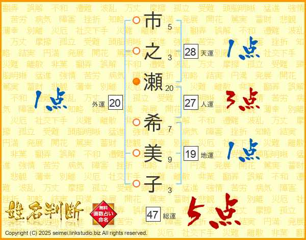 市之瀬希美子さんの総運は47画の5点!