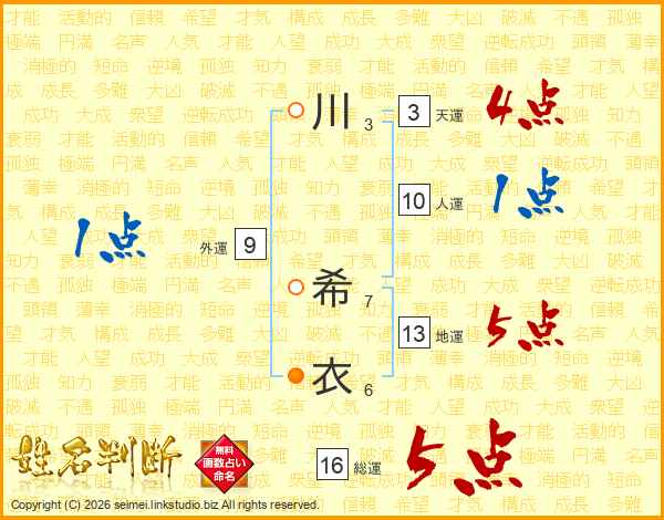 川希衣さんの総運は16画の5点!