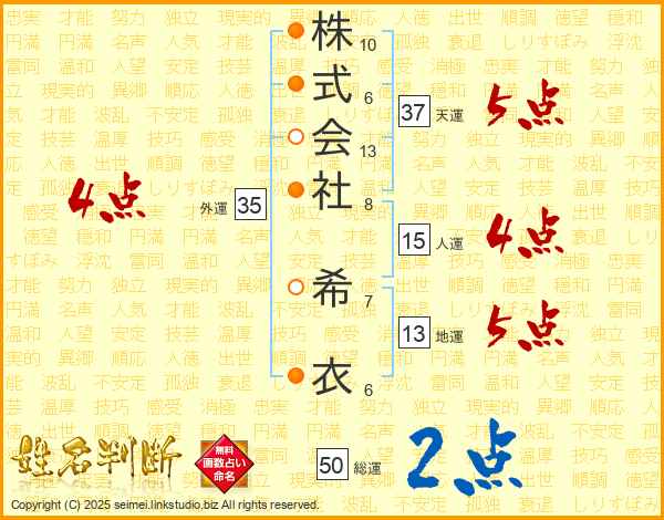株式会社希衣さんの外運は35画の4点!