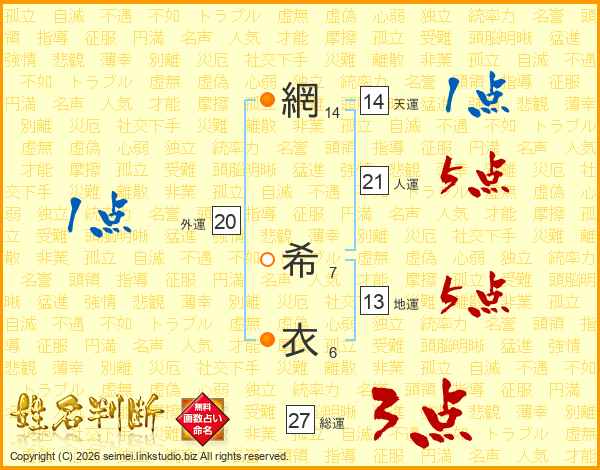 網希衣さんの総運は27画の3点!