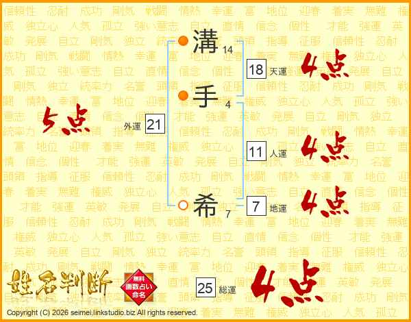 溝手希さんの総運は25画の4点!
