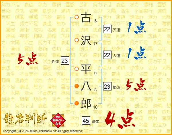 古沢平八郎さんの総運は45画の4点!