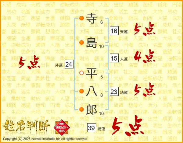 寺島平八郎さんの総運は39画の5点!