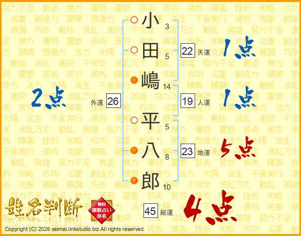 小田嶋平八郎さんの総運は45画の4点!