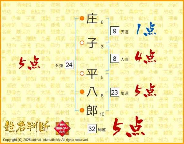 庄子平八郎さんの総運は32画の5点!