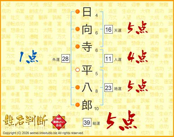 日向寺平八郎さんの総運は39画の5点!