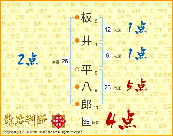 板井平八郎さんの総運は35画の4点!