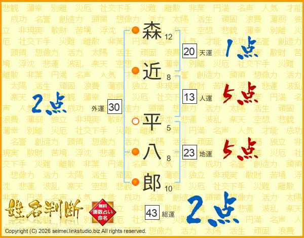 森近平八郎さんの人運は13画の5点!