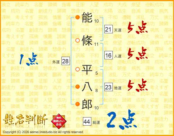 能條平八郎さんの総運は44画の2点!