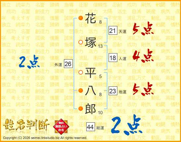 花塚平八郎さんの総運は44画の2点!