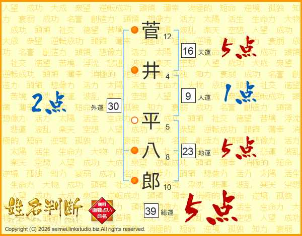菅井平八郎さんの総運は39画の5点!