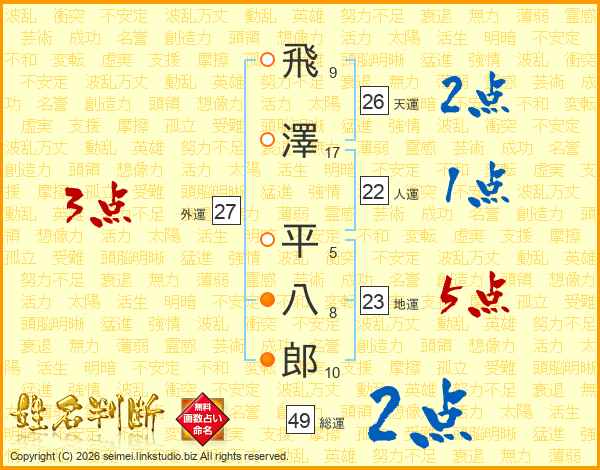 飛澤平八郎さんの総運は49画の2点!