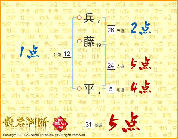 兵藤平さんの天運は26画の2点!