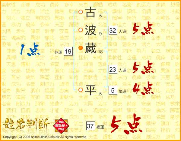 古波蔵平さんの総運は37画の5点!