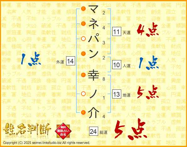 マネパン幸ノ介さんの総運は24画の5点!