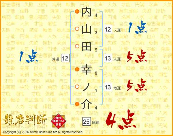 内山田幸ノ介さんの総運は25画の4点!